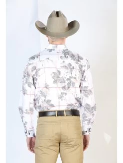 Camisa Vaquera Manga Larga Estampada Floral Blanco Para Hombre ‘El Señor De Los Cielos’ – ID: 126275