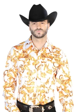 Camisa Vaquera Manga Larga Estampada Floral Marfil Para Mujer ‘El Señor De Los Cielos’ – ID: 43896