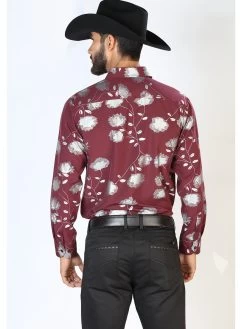 Camisa Vaquera Manga Larga Estampada Floral Vino Para Hombre ‘El Señor De Los Cielos’ – ID: 43776