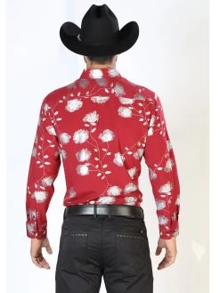 Camisa Vaquera Manga Larga Estampada Floral Rojo Para Hombre ‘El Señor De Los Cielos’ – ID: 43778