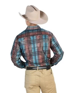 Camisa Vaquera Manga Larga Estampada Cuadros Azul Para Hombre ‘El Señor De Los Cielos’ – ID: 43851