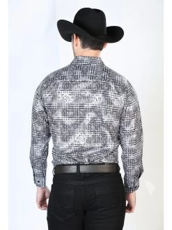 Camisa Vaquera Manga Larga Estampada Cuadros Negro Para Hombre ‘El Señor De Los Cielos’ – ID: 43782