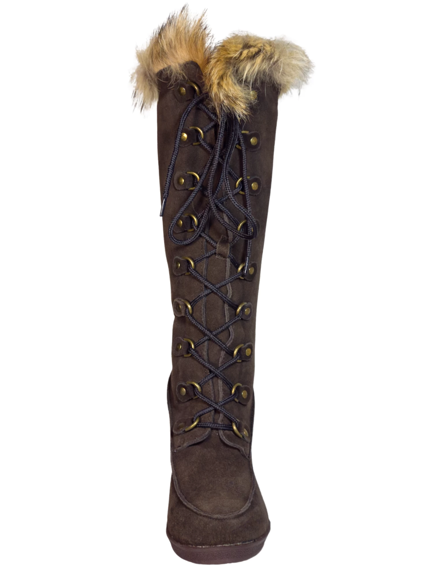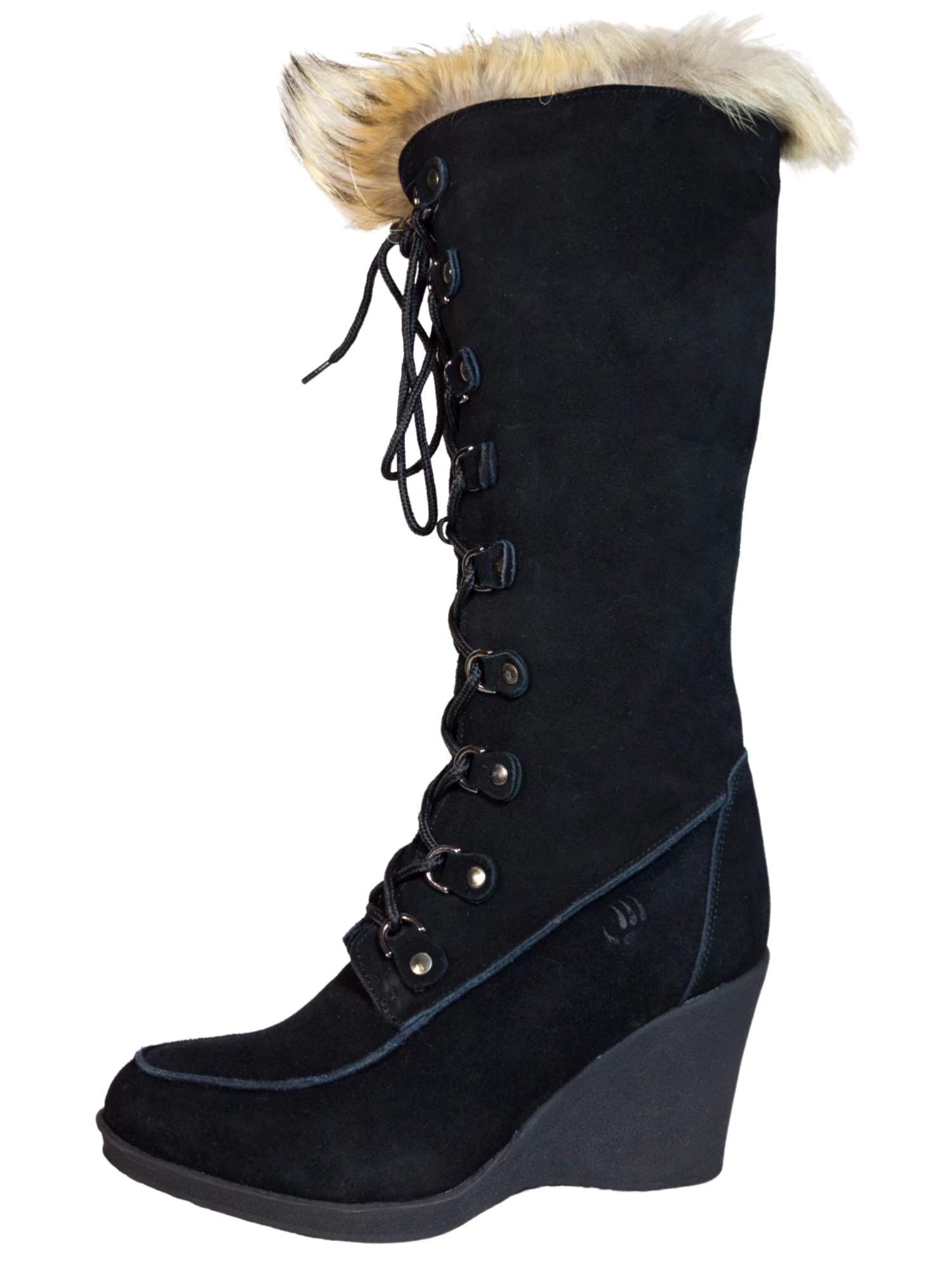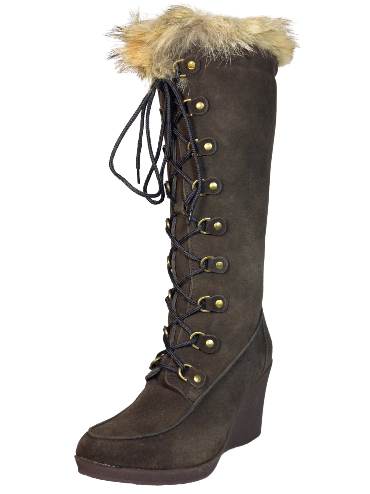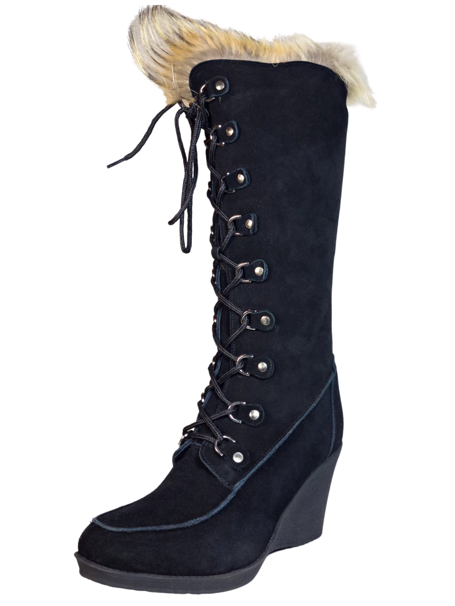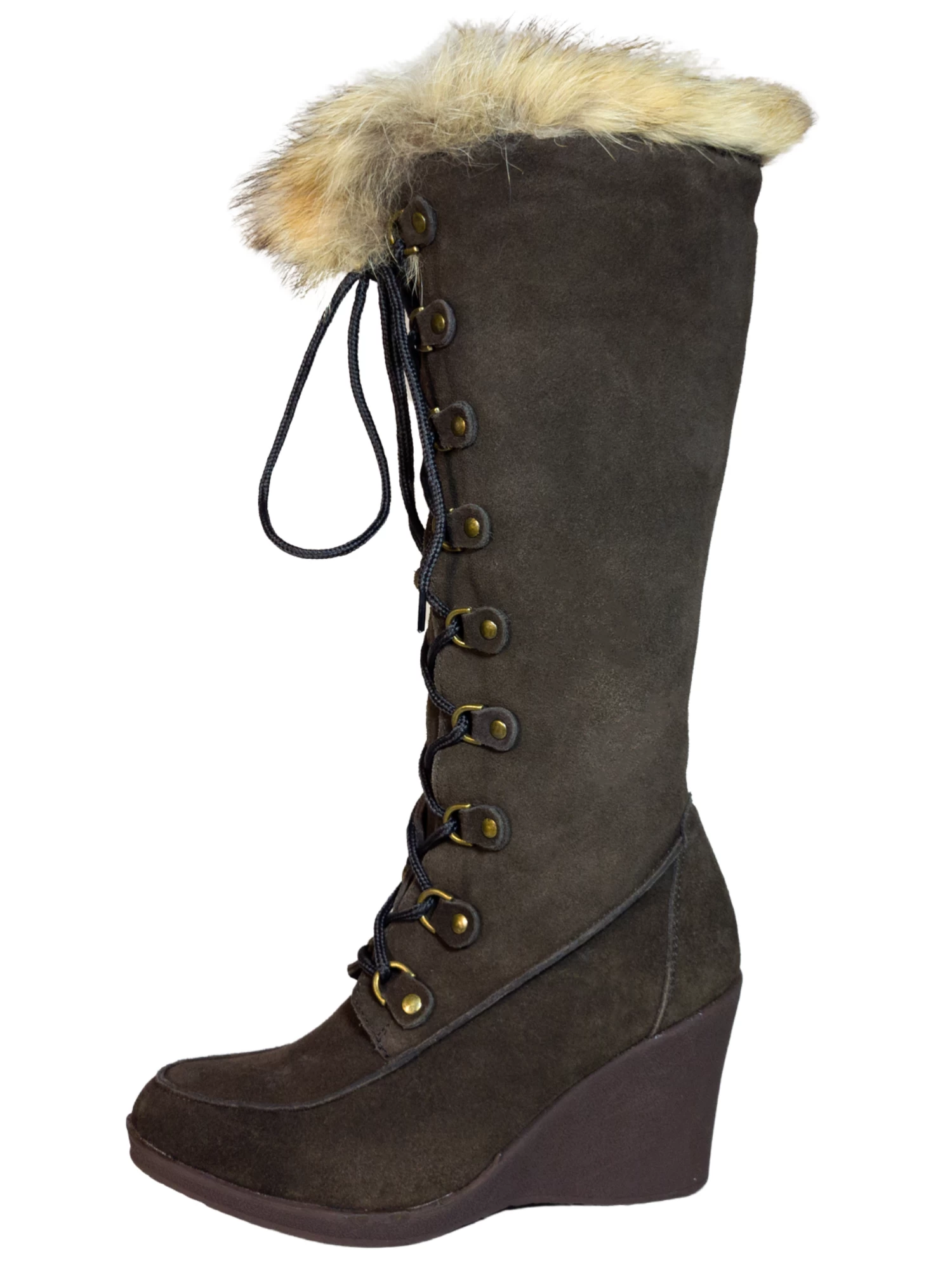 - Women’s Suede Leather/Fox Fur Wedge Winter Boots ‘Bearpaw’