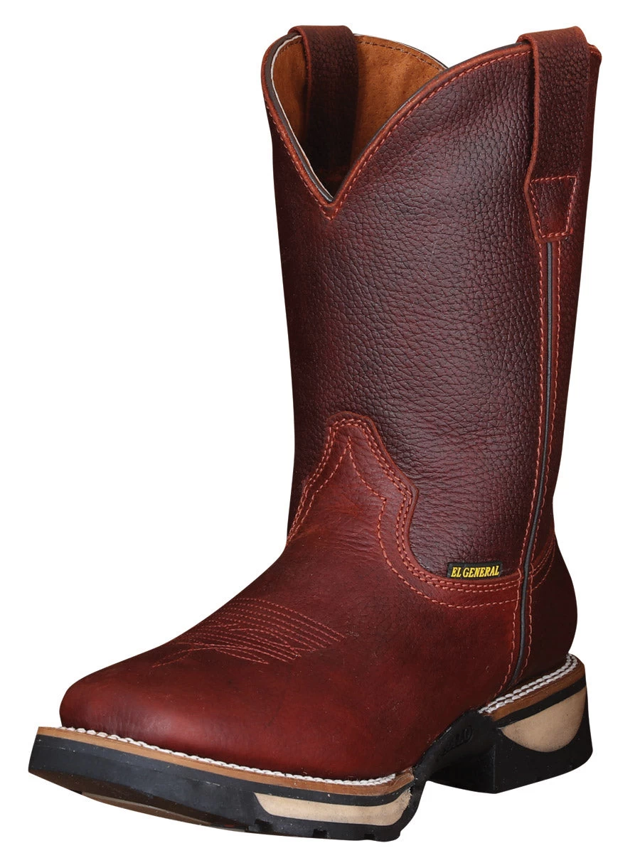 - Men’s Genuine Leather Western Pull-On Soft Toe Work Boots ‘El General’