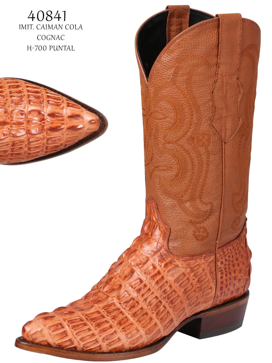 - Men’s Caiman Tail Print Cow Leather Western Cowboy Boots ‘El Señor de los Cielos’