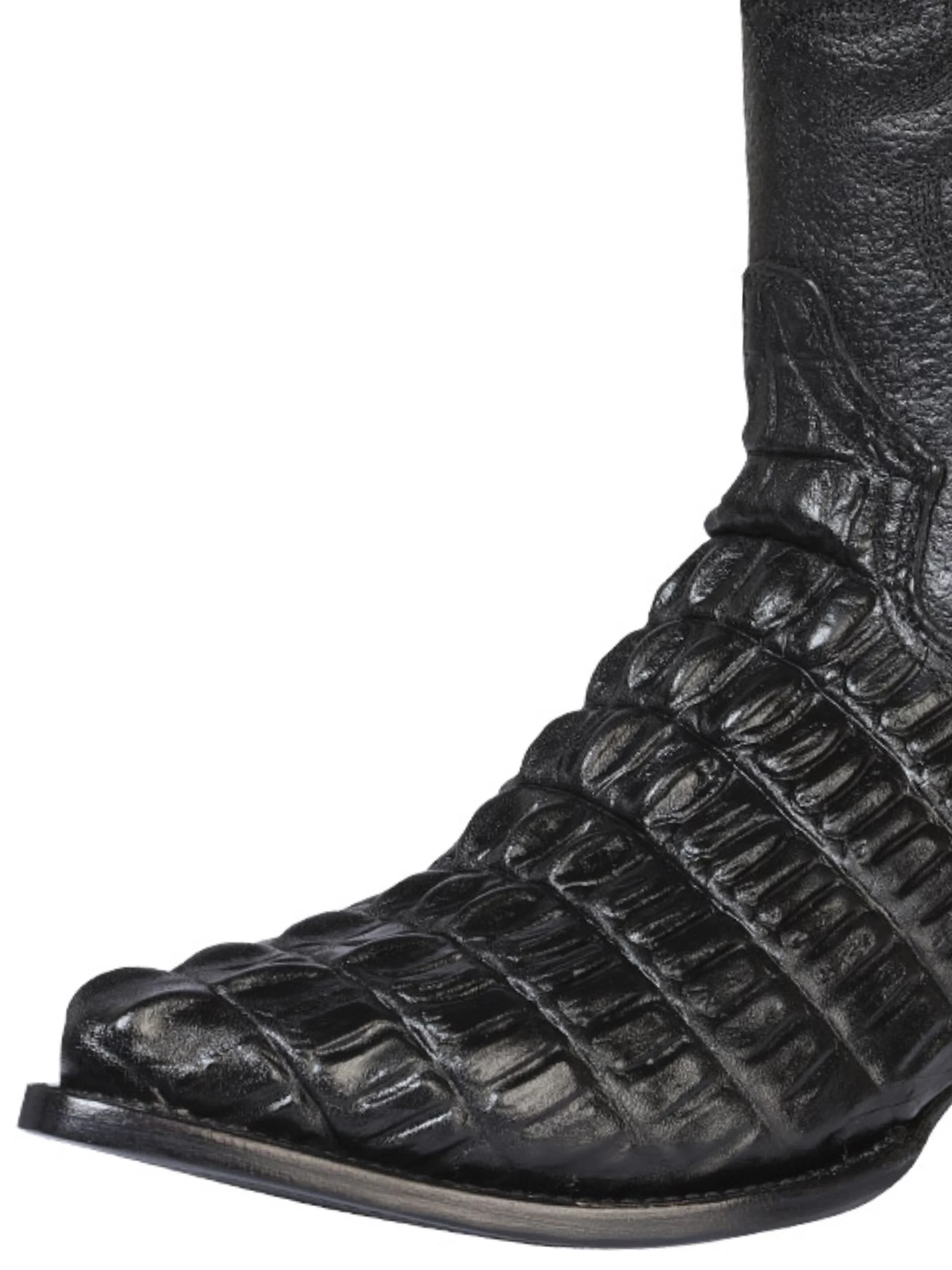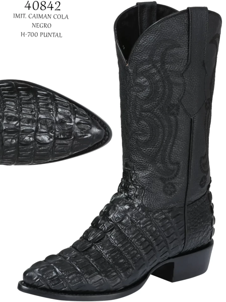 - Men’s Caiman Tail Print Cow Leather Western Cowboy Boots ‘El Señor de los Cielos’