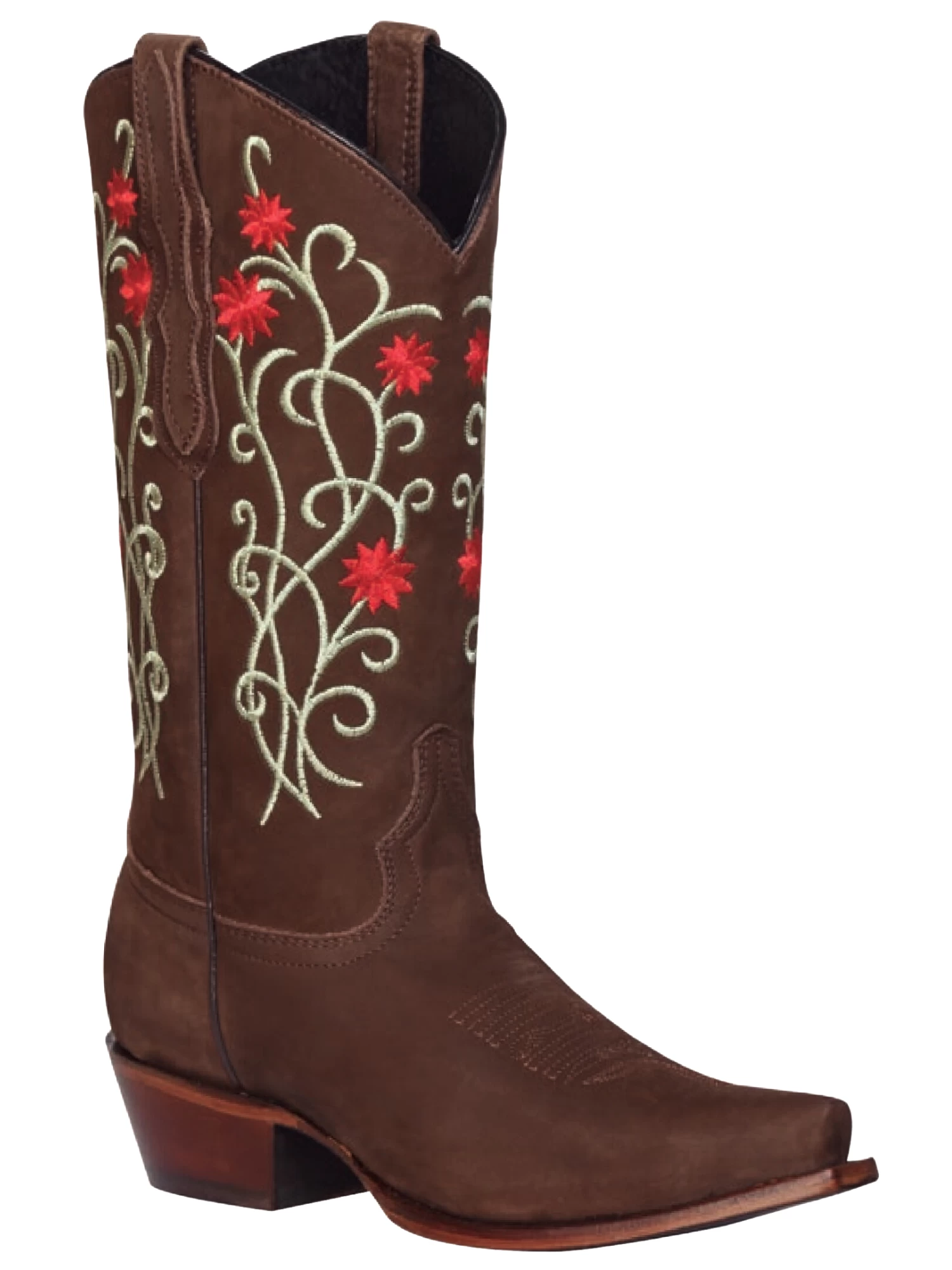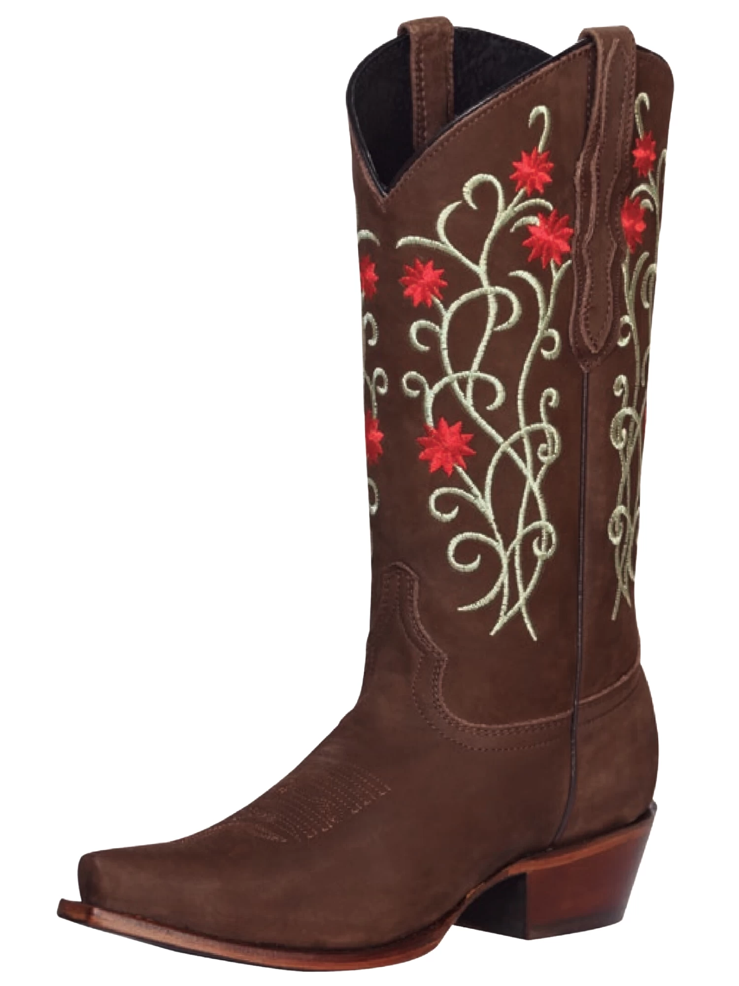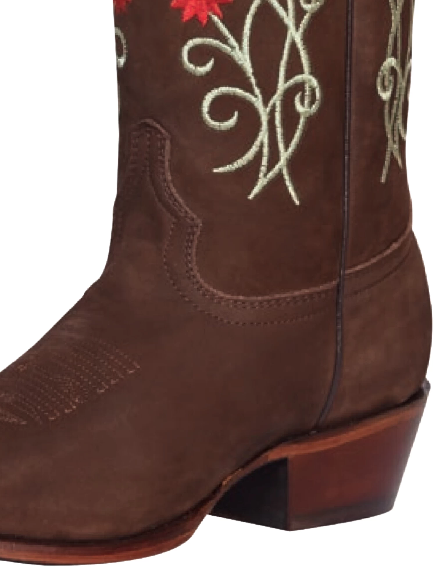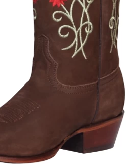 - Women’s Nubuck Leather Floral Embroidered Shaft Retro Western Cowgirl Boots ‘El General’