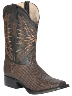 - Men’s Woven Leather Classic Western Cowboy Boots ‘El General’