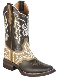 - Men’s Genuine Leather Embroidered Saddle Western Cowboy Boots ‘El General’