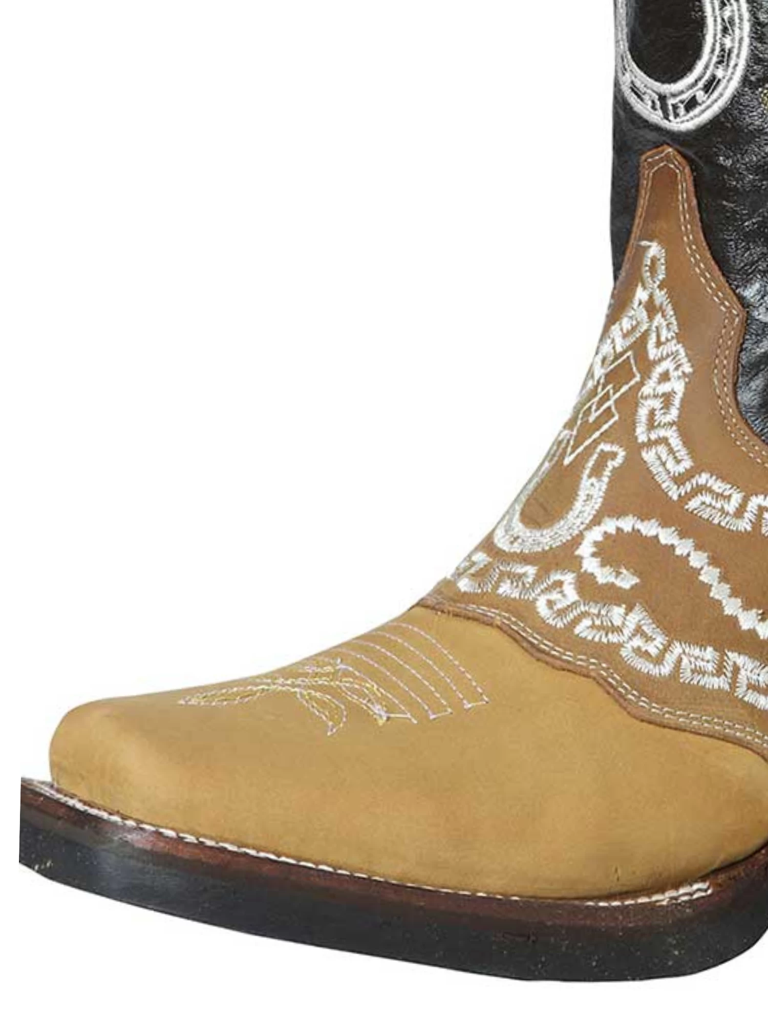 - Men’s Nubuck Leather Embroidered Saddle Western Cowboy Boots ‘El General’