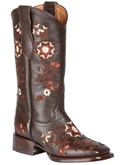 - Women’s Genuine Leather Flowers Embroidered Western Cowgirl Boots ‘Jar Boots’