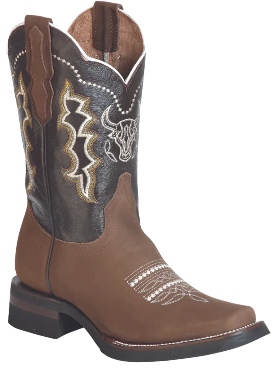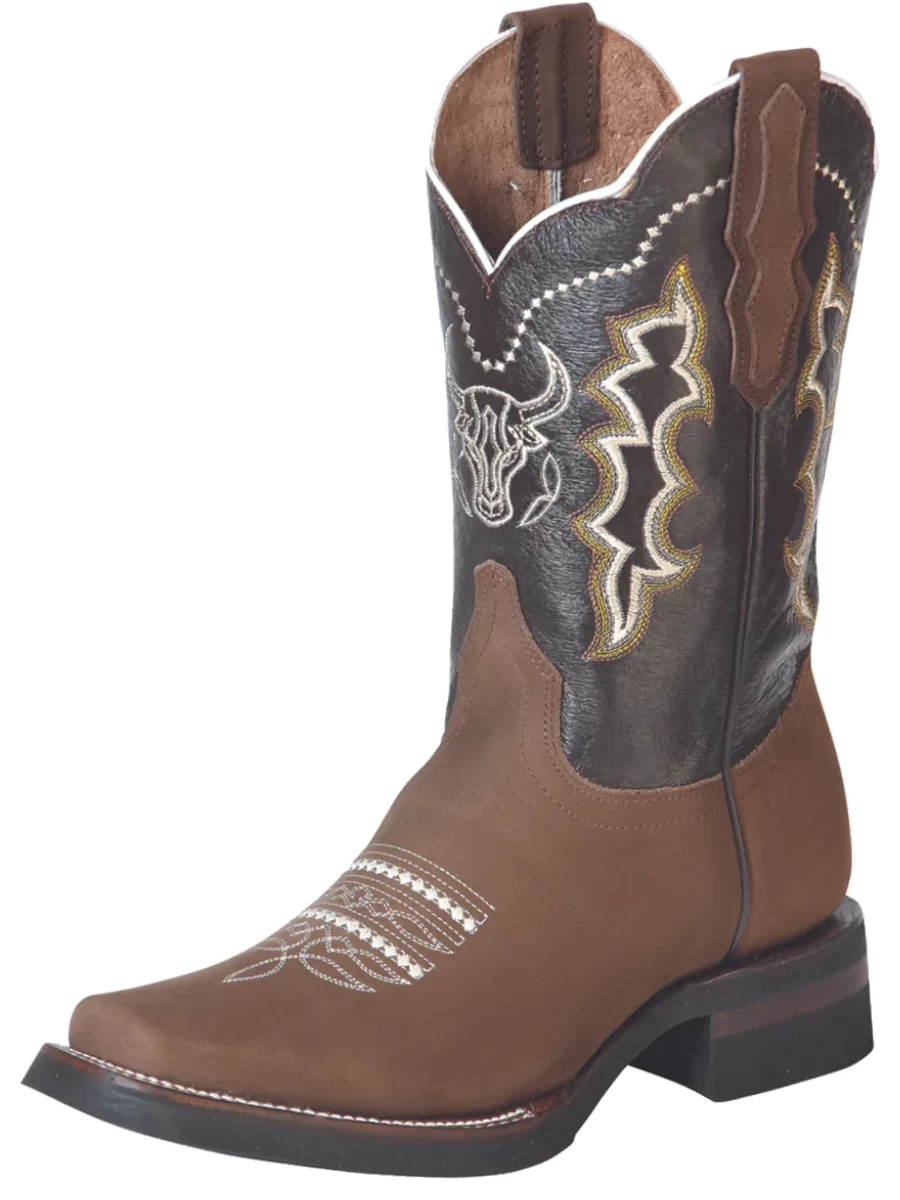 - Men’s Nubuck Leather Embroidered Design Western Cowboy Boots ‘El General’
