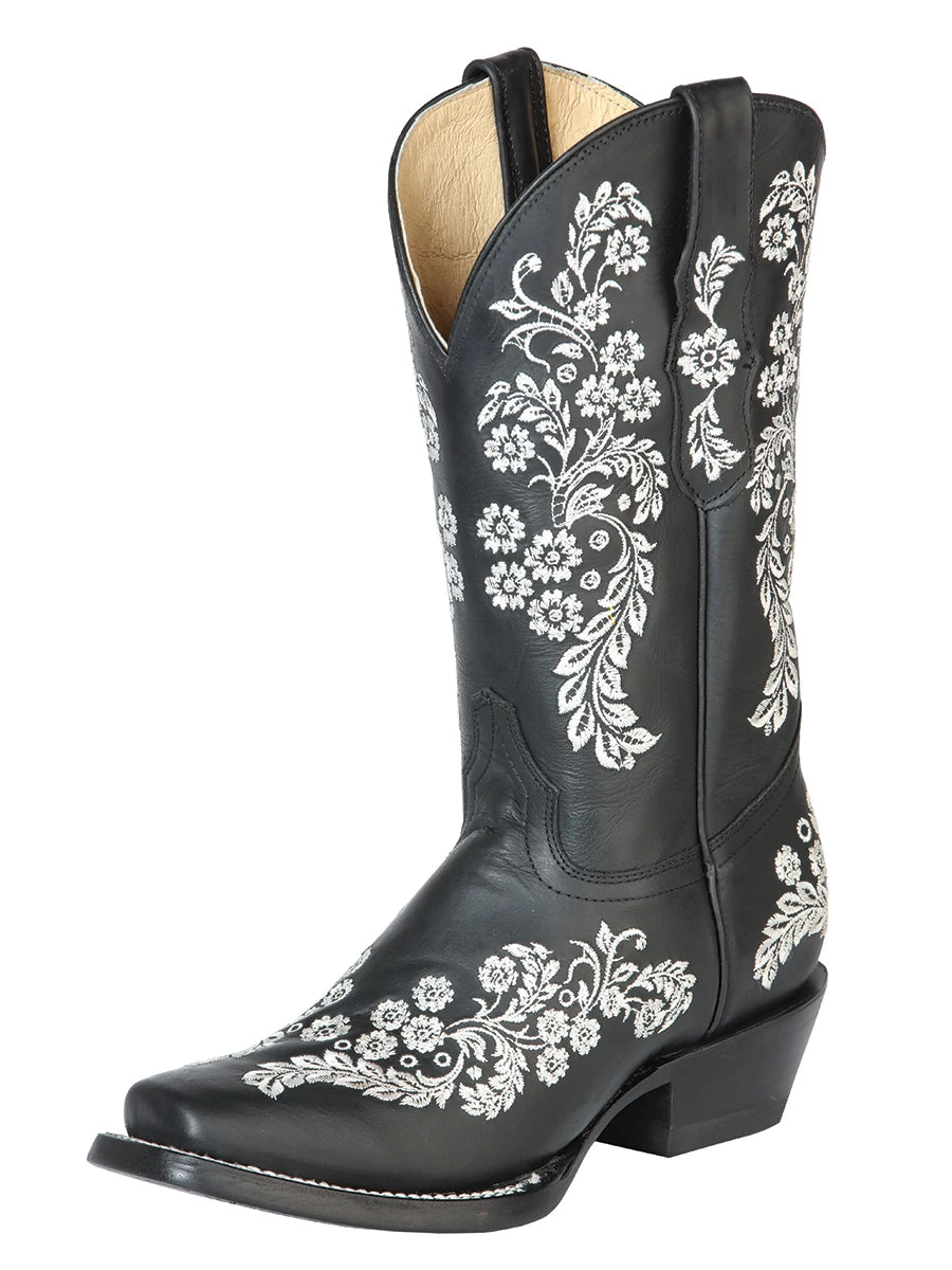 - Women’s Genuine Leather Flowers Embroidered Shaft Western Cowgirl Boots ‘El General’