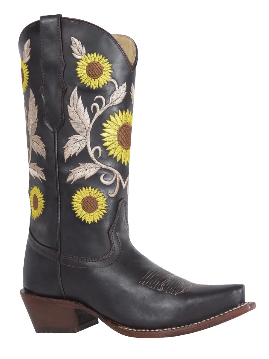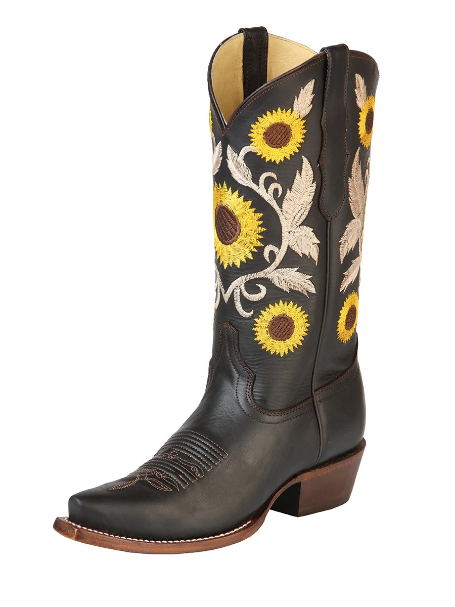 - Women’s Genuine Leather Sunflowers Embroidered Shaft Retro Western Cowgirl Boots ‘Centenario’