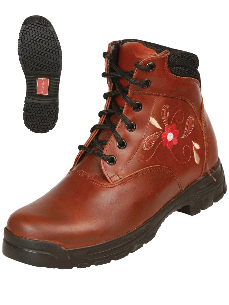 - Unisex’s Genuine Leather Flower Embroidered Lace-Up Casual Ankle Boots ‘El General’