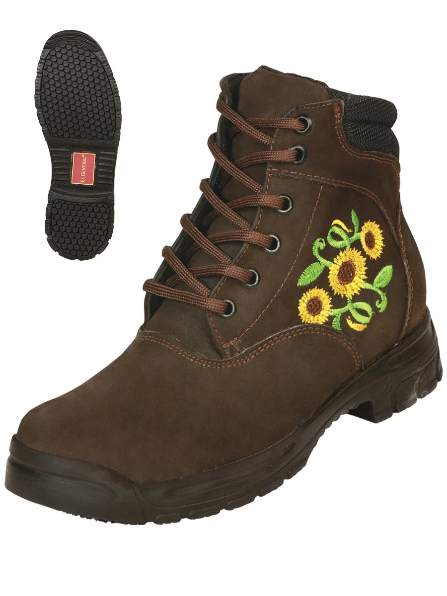 - Unisex’s Nubuck Leather Sunflowers Embroidered Lace-Up Casual Ankle Boots ‘El General’
