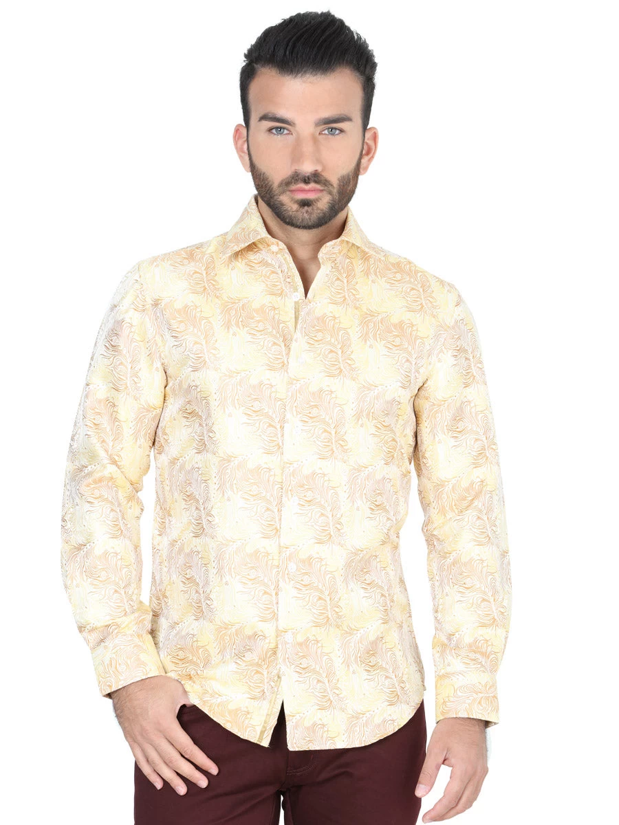 - Men’s Yellow/Gold Print Long Sleeve Casual Shirt ‘Centenario’