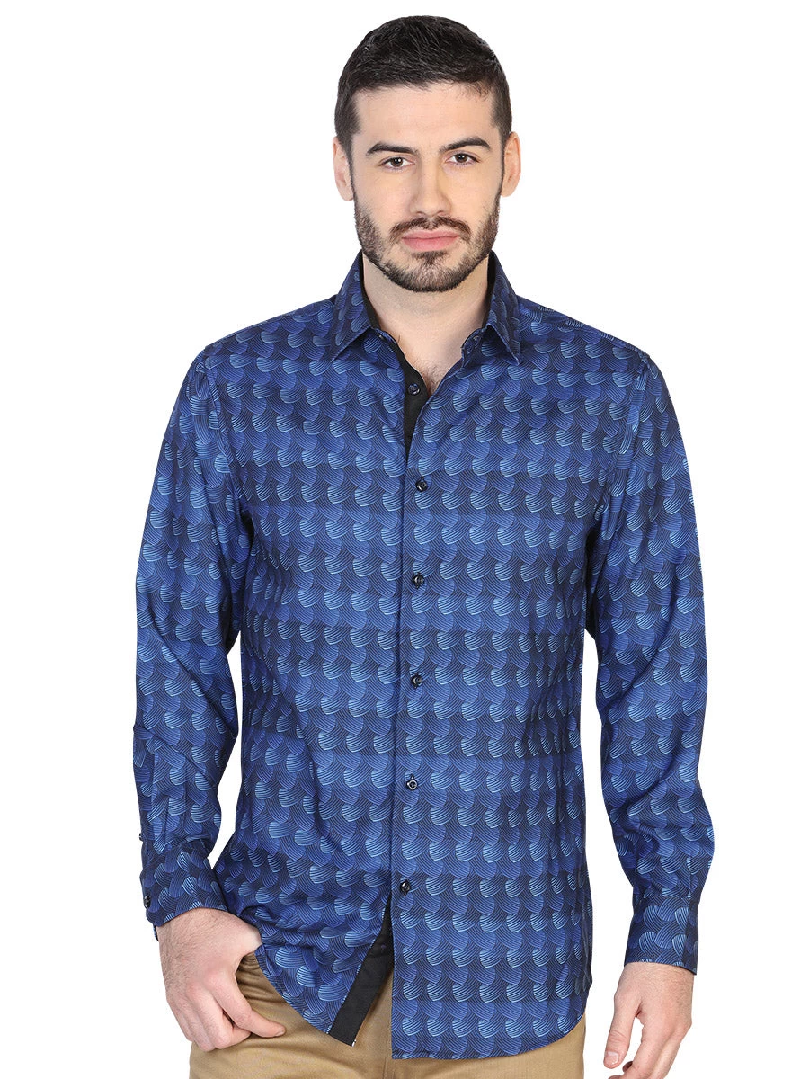 - Men’s Blue/Black Print Long Sleeve Casual Shirt ‘El Señor de los Cielos’