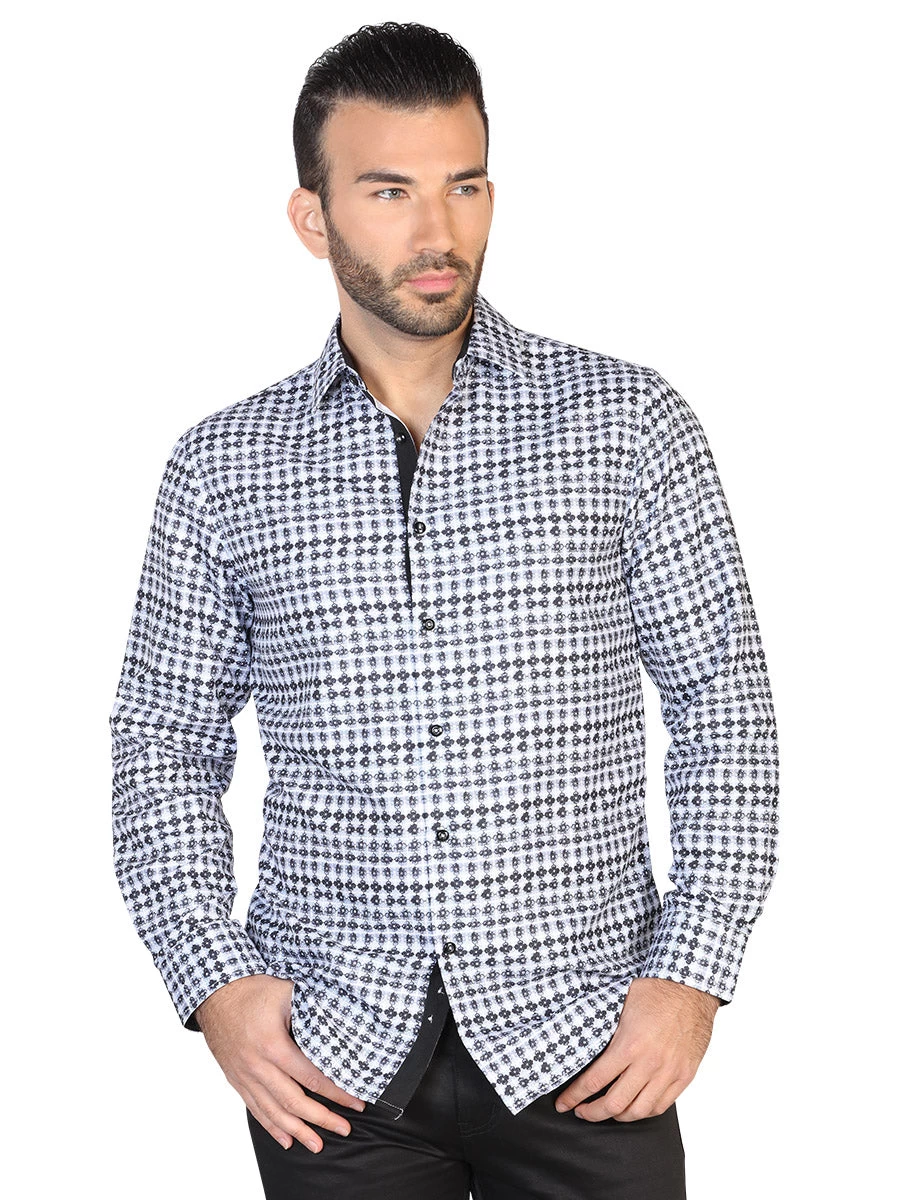 - Men’s Black/White Print Long Sleeve Casual Shirt ‘El Señor de los Cielos’