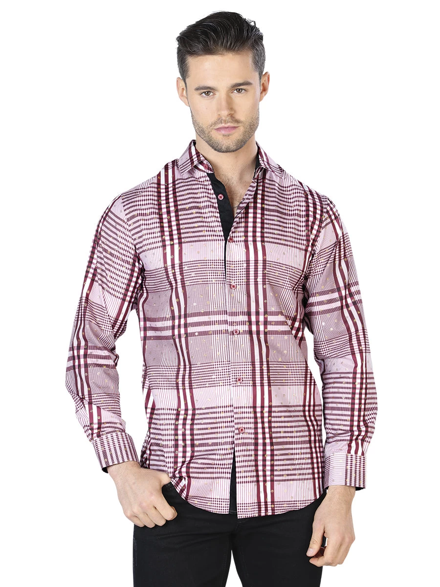 - Men’s Wine/White Print Long Sleeve Casual Shirt ‘El Señor de los Cielos’