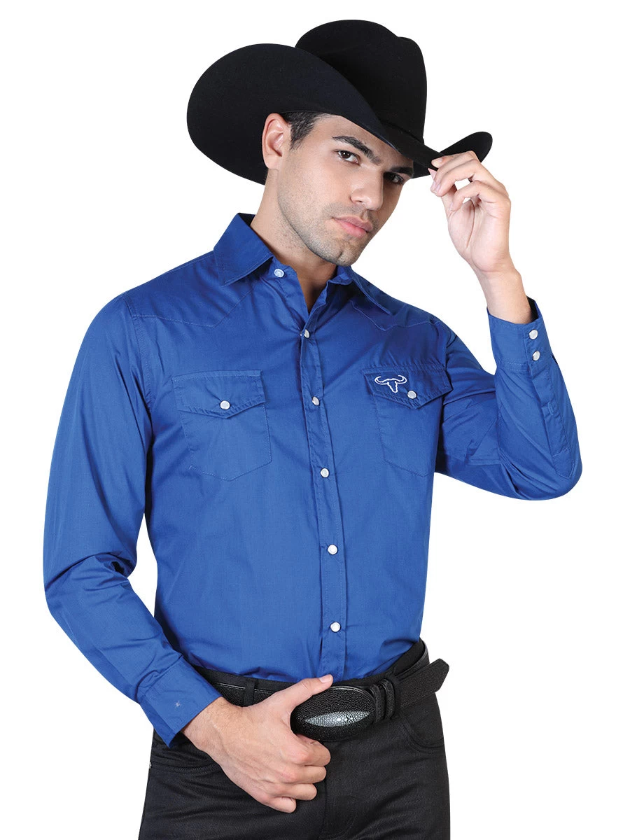 - Men’s Cobalt Blue Embroidered Long Sleeve Western Shirt ‘El General’