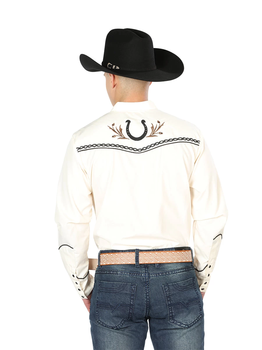 - Men’s Beige Embroidered Long Sleeve Western Shirt ‘El Señor de los Cielos’