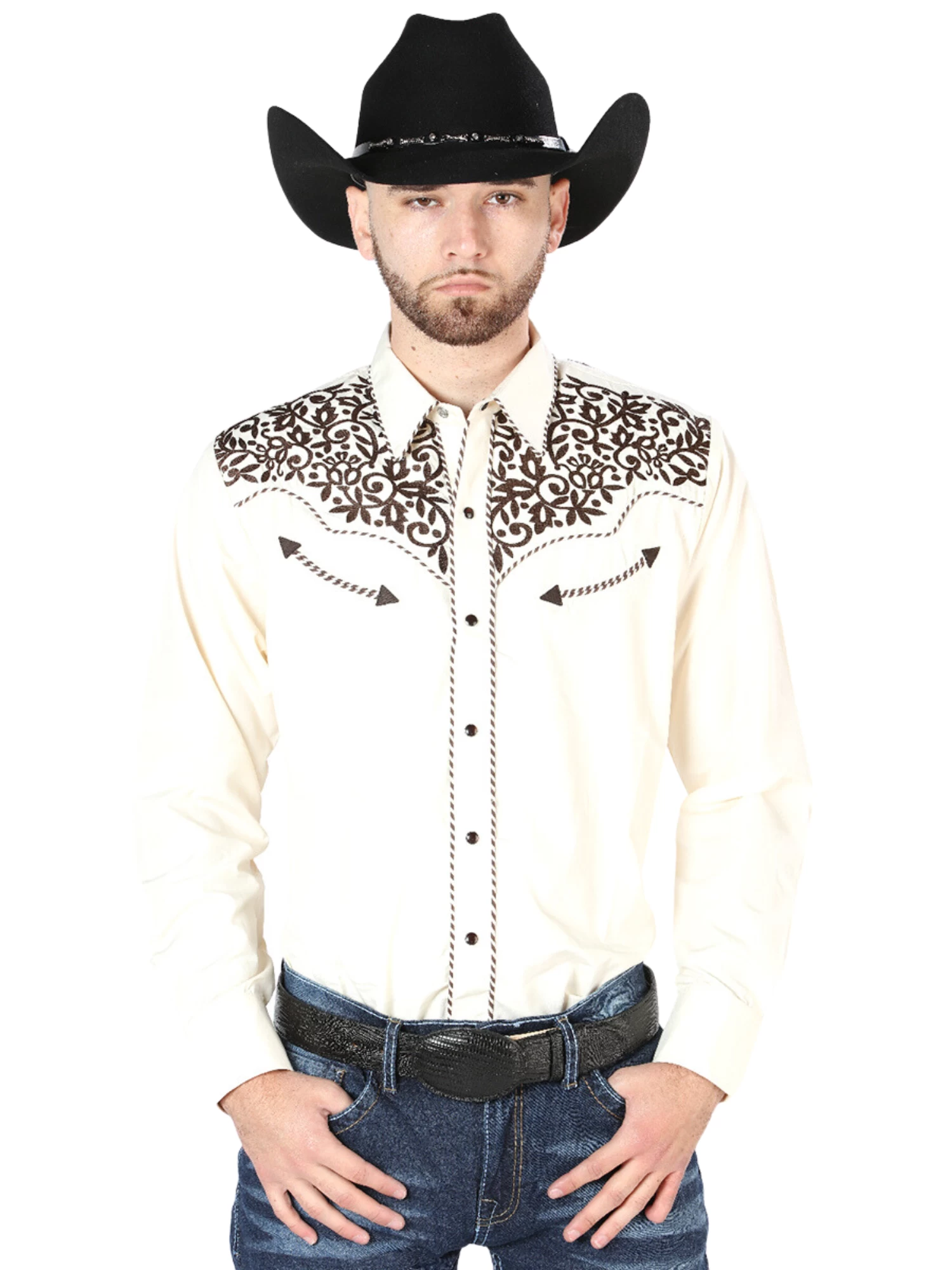 - Men’s Beige Embroidered Long Sleeve Western Shirt ‘El Señor de los Cielos’