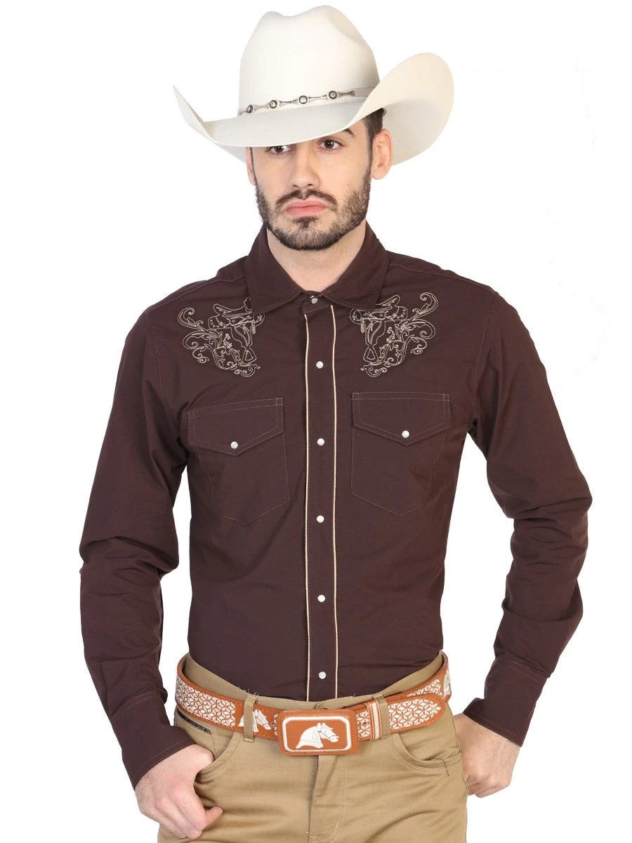 - Men’s Brown Embroidered Long Sleeve Western Shirt ‘El Señor de los Cielos’