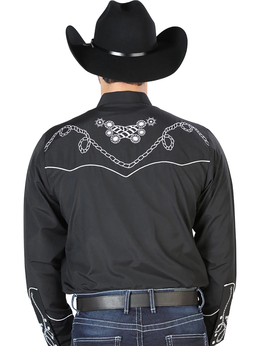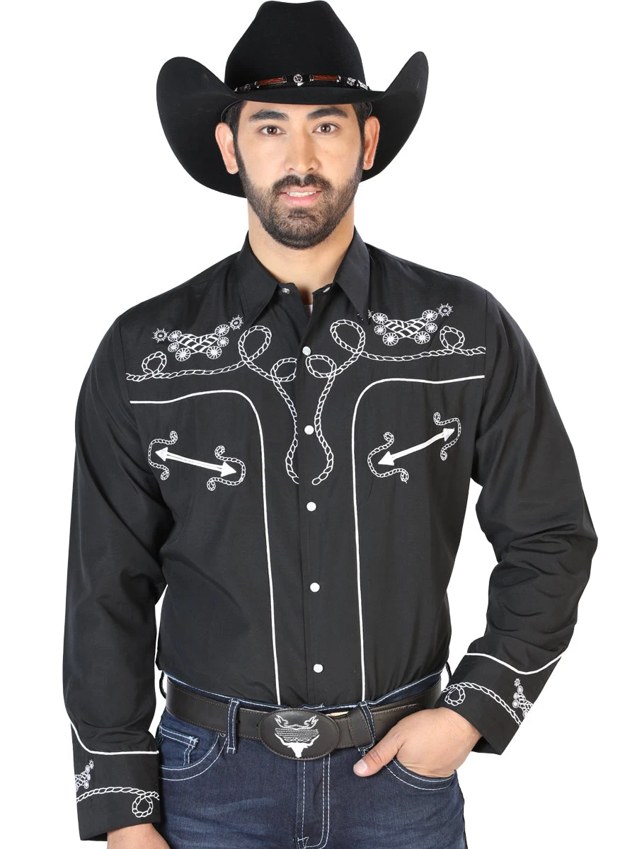 - Men’s Black Embroidered Long Sleeve Western Shirt ‘El Señor de los Cielos’
