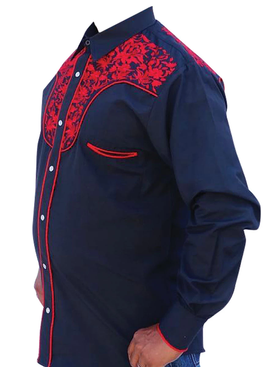 - Men’s Black Embroidered Long Sleeve Western Shirt ‘El Señor de los Cielos’
