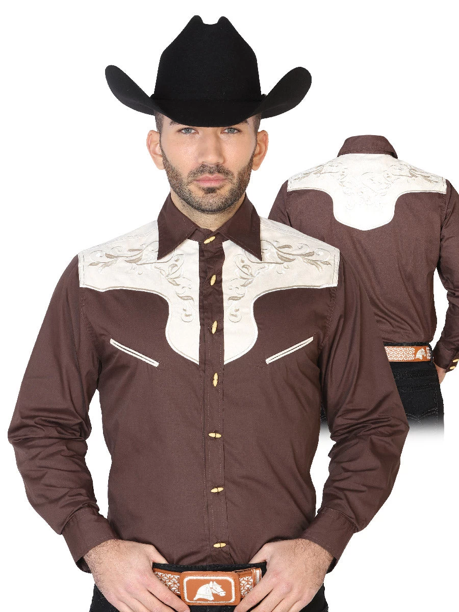 - Men’s Brown Embroidered Long Sleeve Western Shirt ‘El Señor de los Cielos’