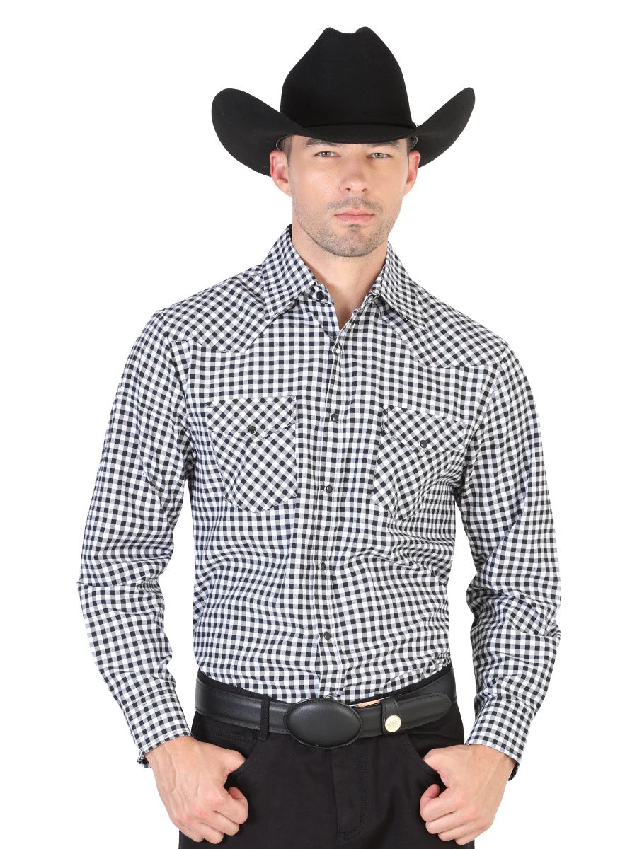 - Men’s Black Plaid Print Pockets Long Sleeve Western Shirt ‘El Señor de los Cielos’
