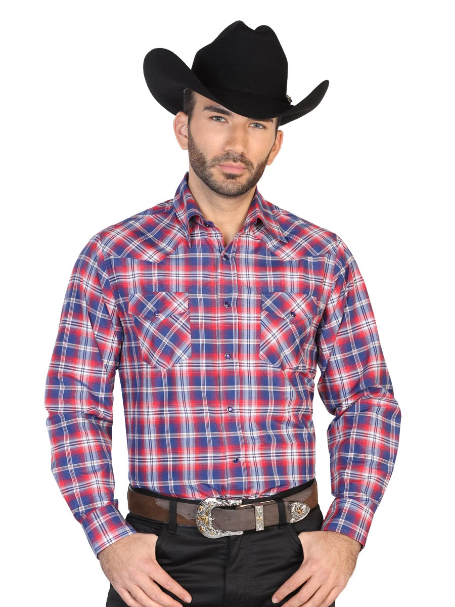 - Men’s Red/Black Plaid Print Pockets Long Sleeve Western Shirt ‘El Señor de los Cielos’