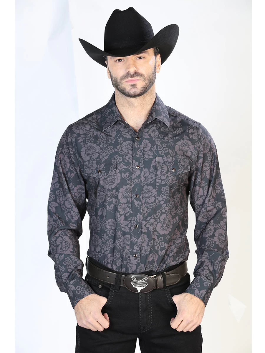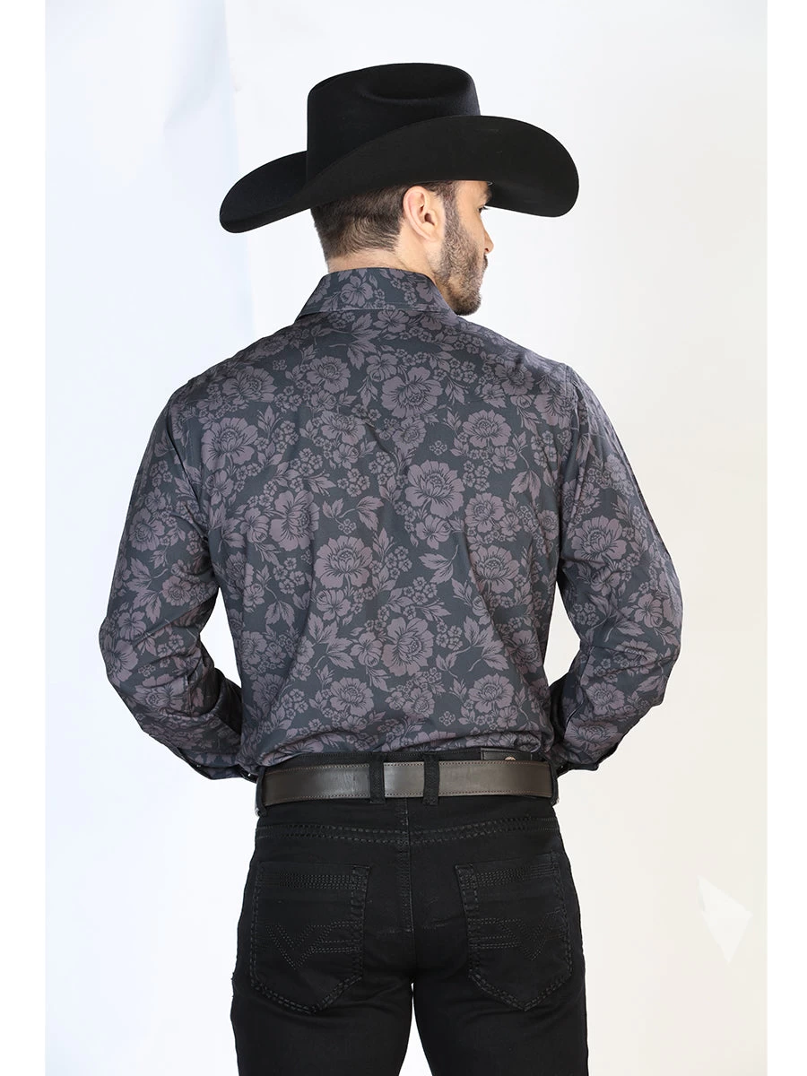 - Men’s Black Floral Print Long Sleeve Snap Western Shirt ‘El Señor de los Cielos’