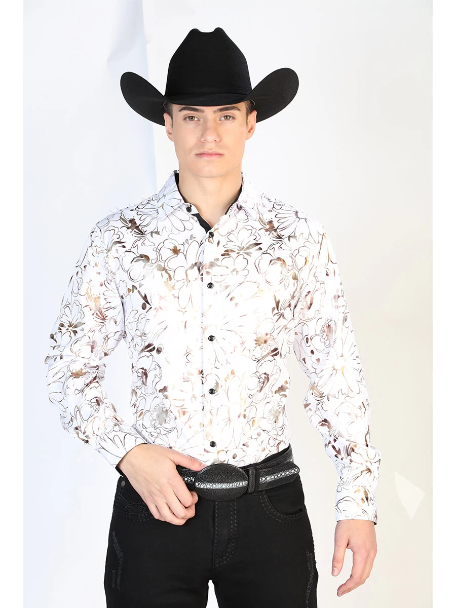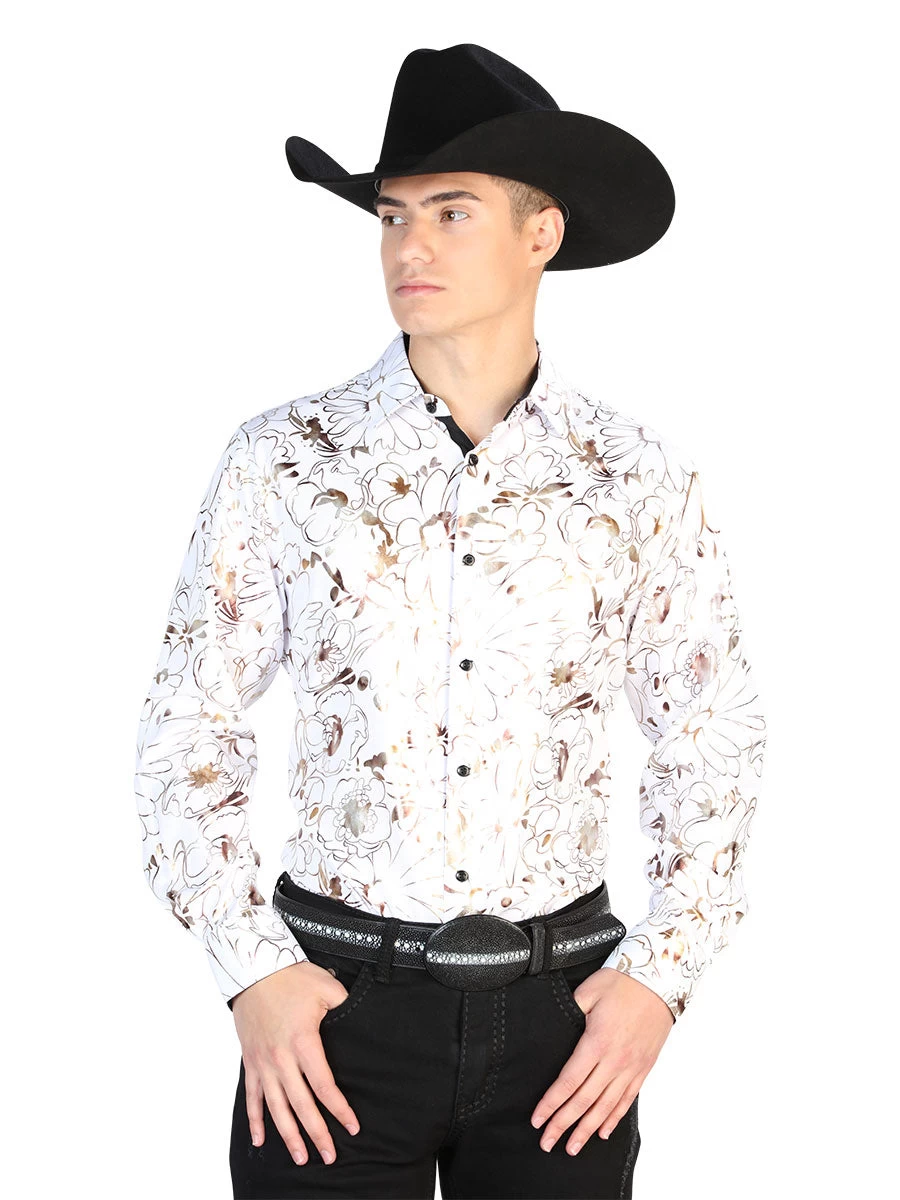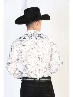 - Men’s White Print Long Sleeve Western Shirt ‘El Señor de los Cielos’