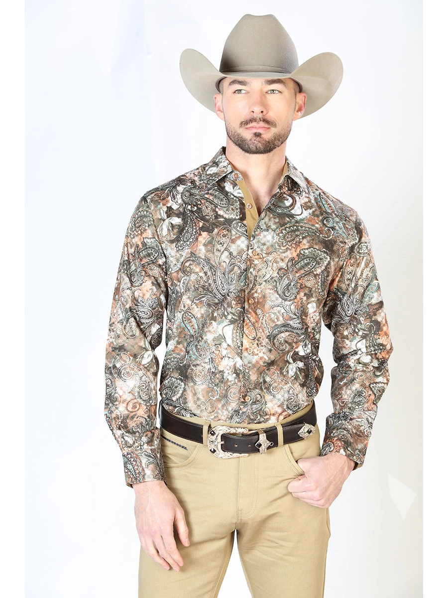 - Men’s Taupe Paisley Print Long Sleeve Western Shirt ‘El Señor de los Cielos’