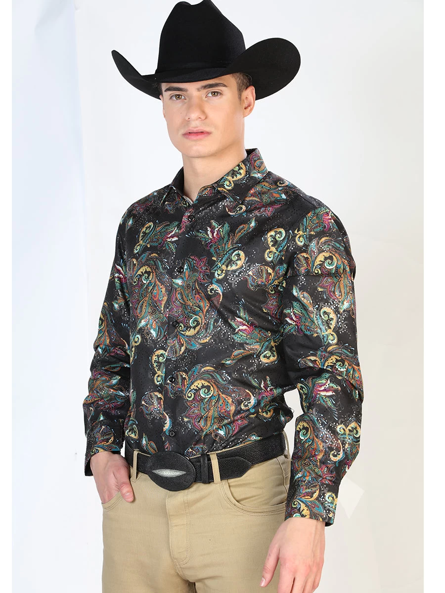 - Men’s Black/Multicolor Paisley Print Long Sleeve Western Shirt ‘El Señor de los Cielos’