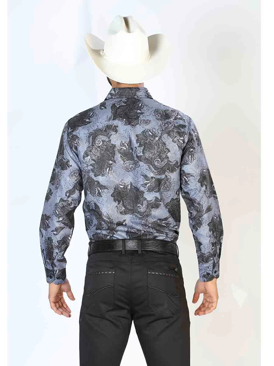 - Men’s Black Paisley Print Long Sleeve Western Shirt ‘El Señor de los Cielos’