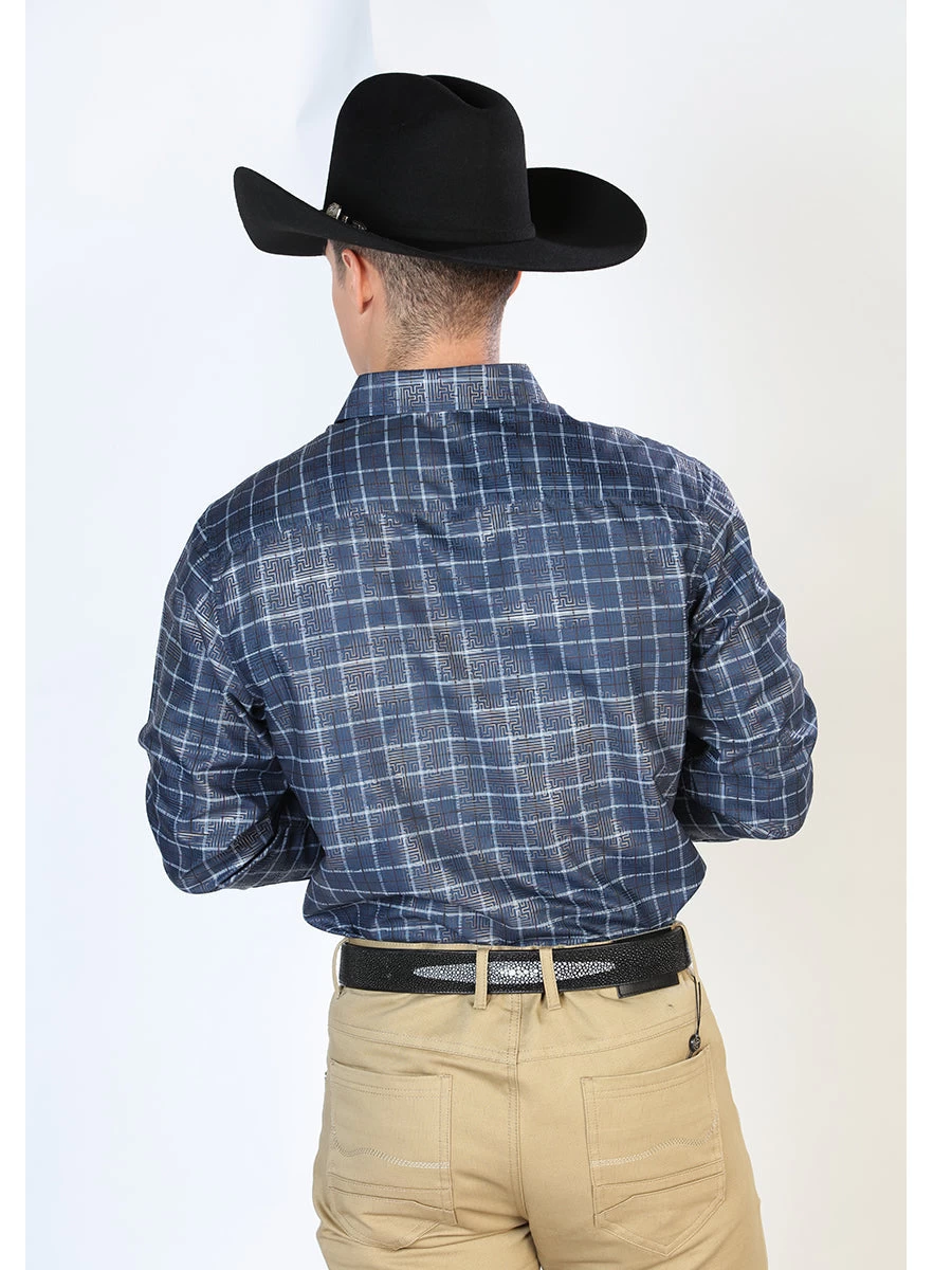 - Men’s Navy Blue Plaid Print Long Sleeve Western Shirt ‘El Señor de los Cielos’