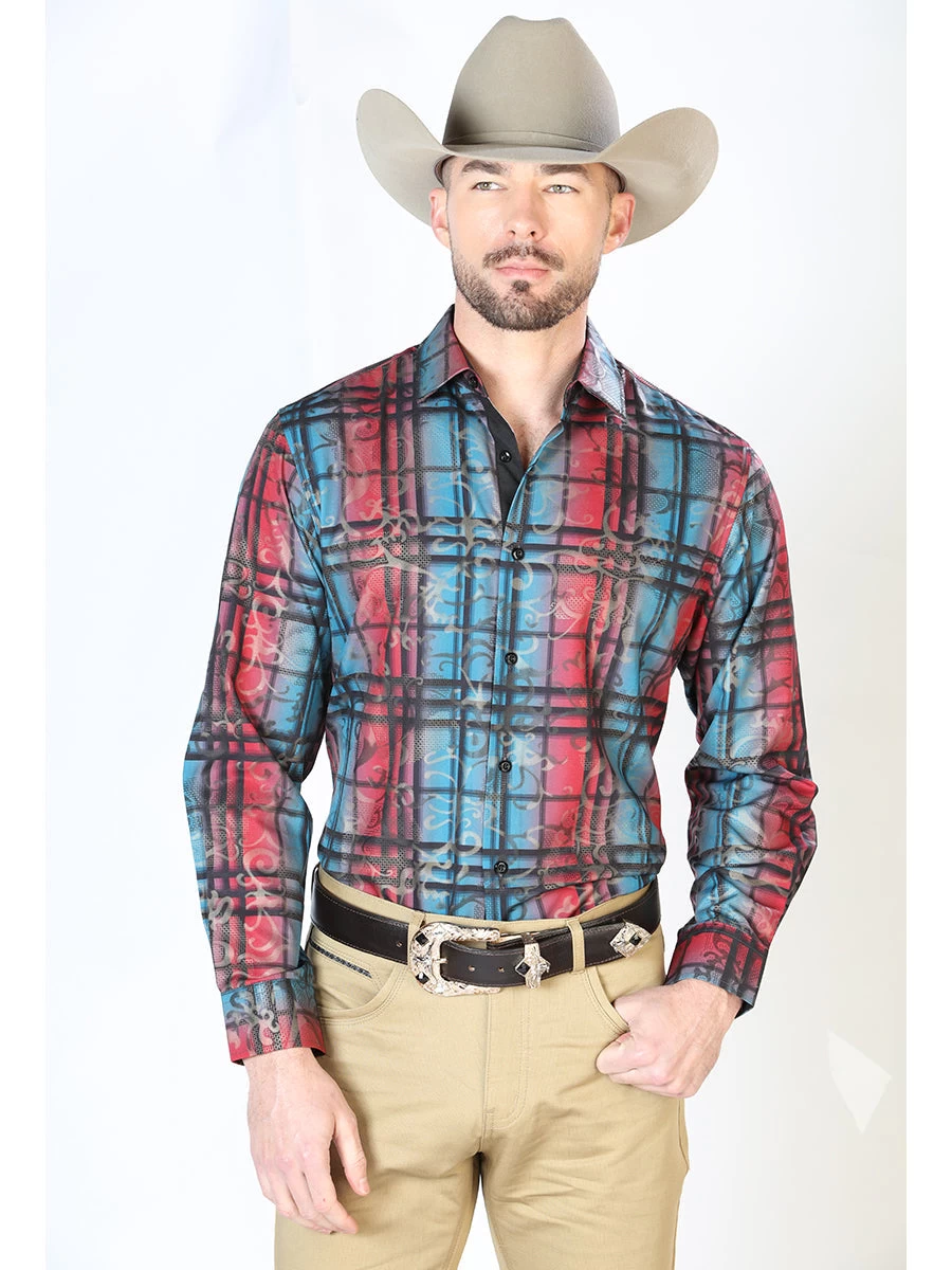 - Men’s Blue Plaid Print Long Sleeve Western Shirt ‘El Señor de los Cielos’
