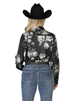 - Women’s Black Floral Print Long Sleeve Western Shirt ‘El Señor de los Cielos’
