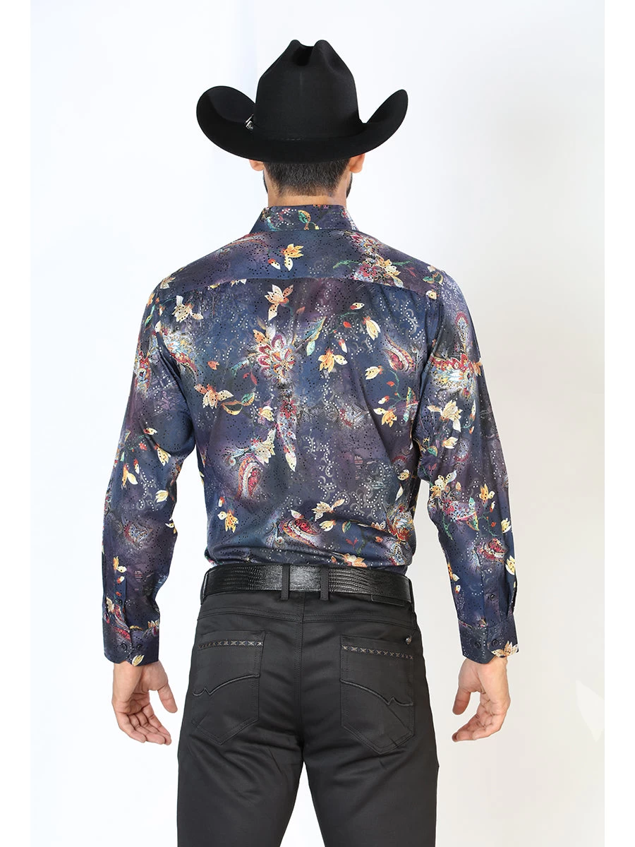 - Men’s Navy Print Long Sleeve Western Shirt ‘El Señor de los Cielos’