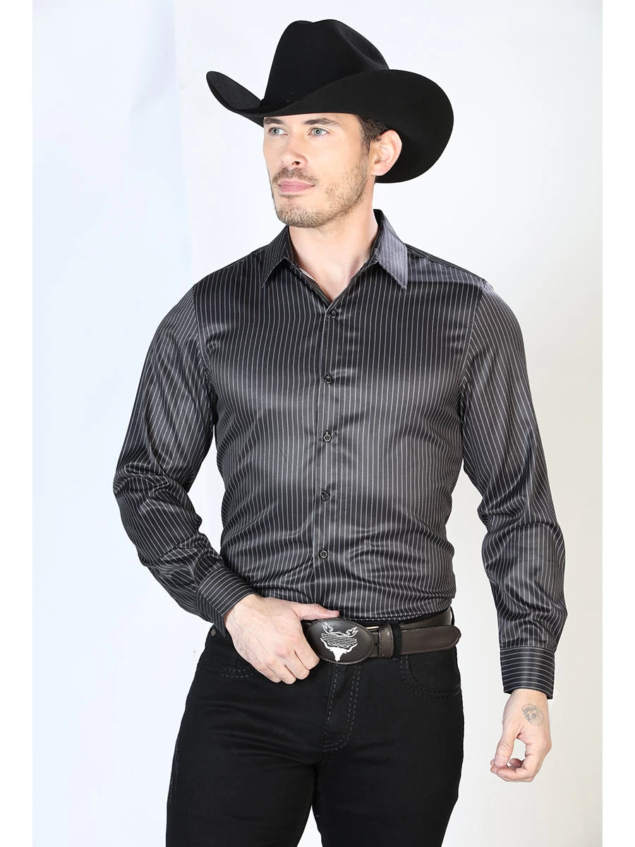 - Men’s Black Stripes Print Long Sleeve Western Shirt ‘El Señor de los Cielos’