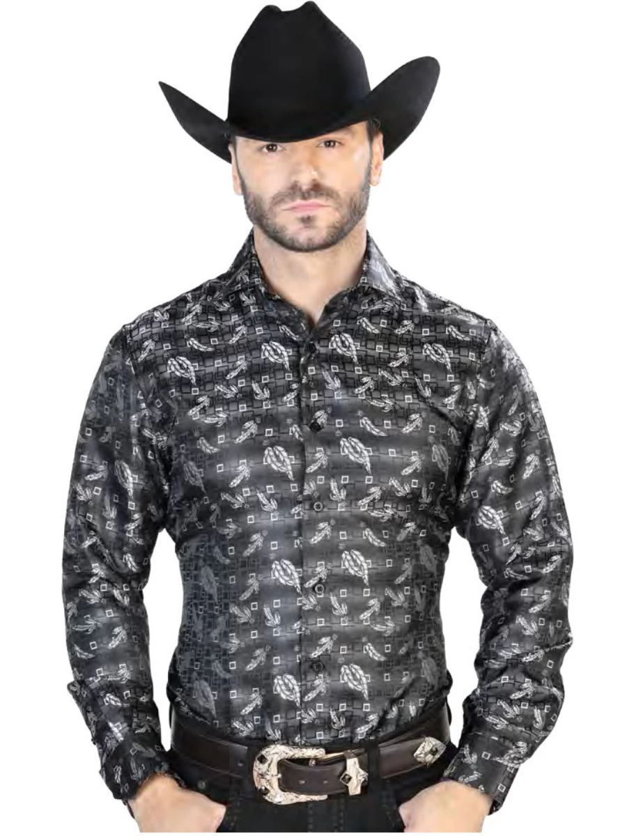 - Men’s Black Paisley Print Long Sleeve Jacquard Western Shirt ‘Centenario’