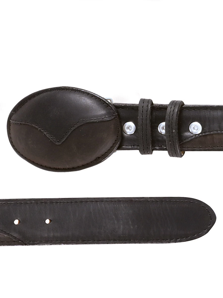 - Men’s Genuine Leather Cowboy Belt with Oval Buckle, 1 1/2″ Width ‘El General’