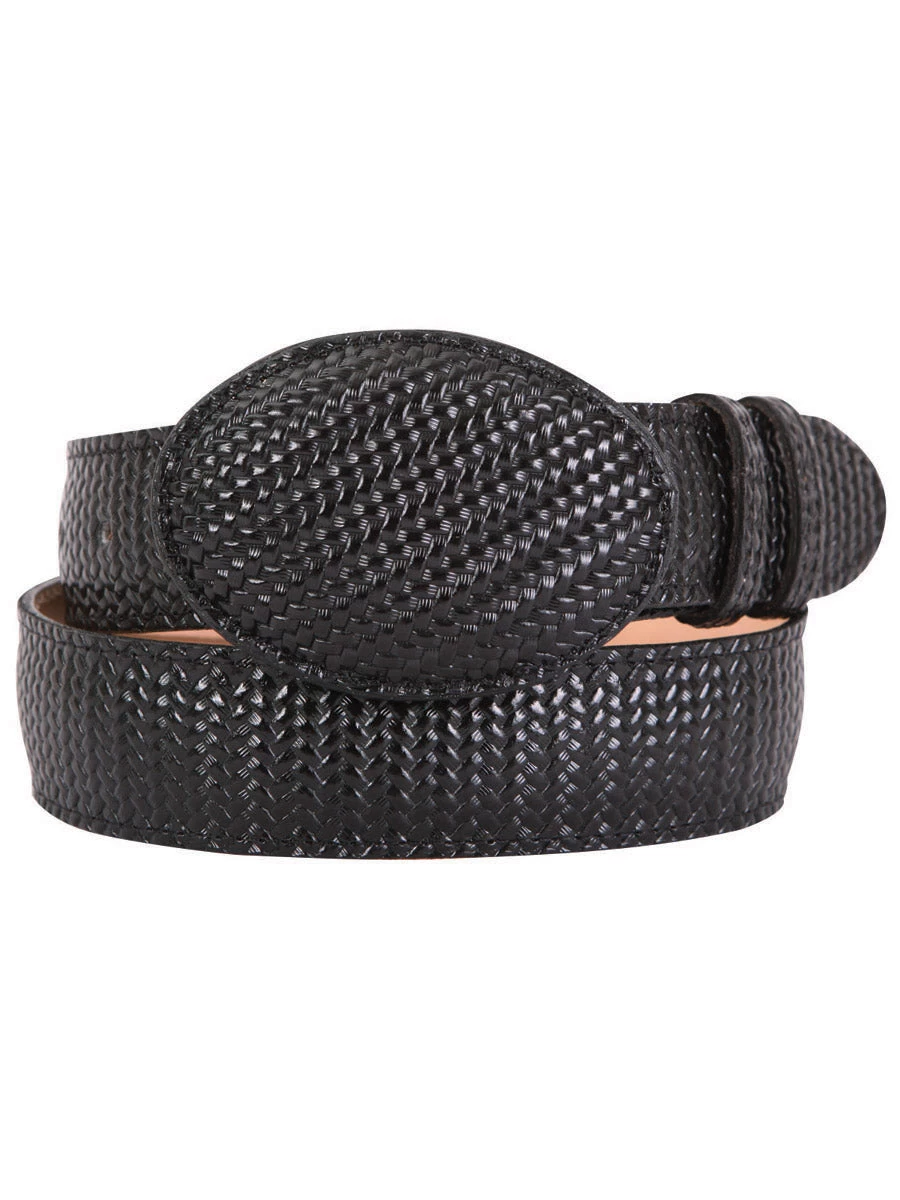 - Men’s Woven Print Leather Cowboy Belt with Oval Buckle, 1 1/2″ Width ‘El General’