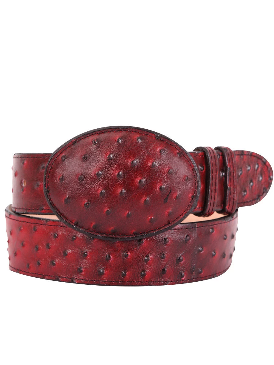 - Men’s Cowhide Ostrich Print Imitation Cowboy Belt with Oval Buckle, 1 1/2″ Width ‘El General’