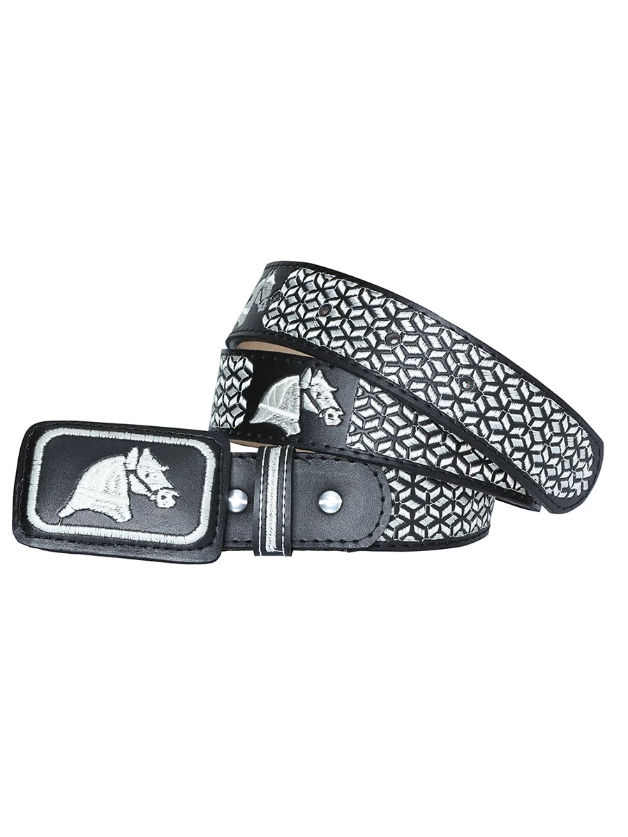 - Men’s Cowhide Leather Embroidered Cowboy Belt with Horses, 1 5/8″ Width ‘El General’