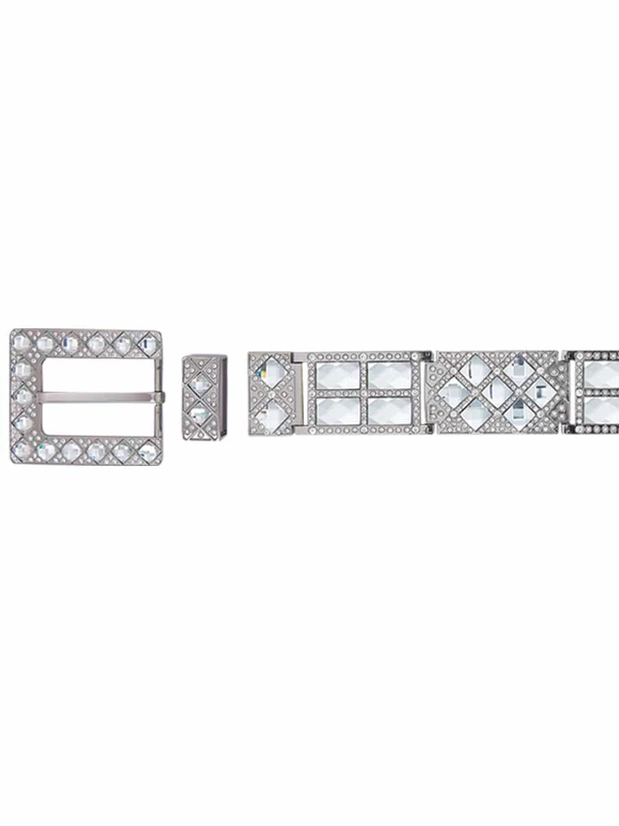 - Engraved Silver Metal White Crystal Ornament 4-Pc Set 1 1/2″ Western Belt Buckle ‘El General’